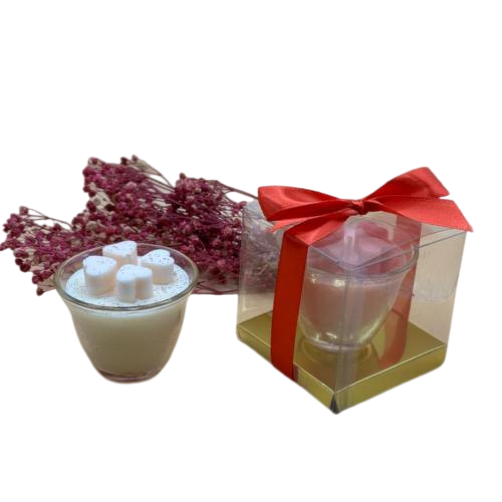 الخامة: شمع طبيعي داخل فنجان زجاجي أو خزفي أنيق.